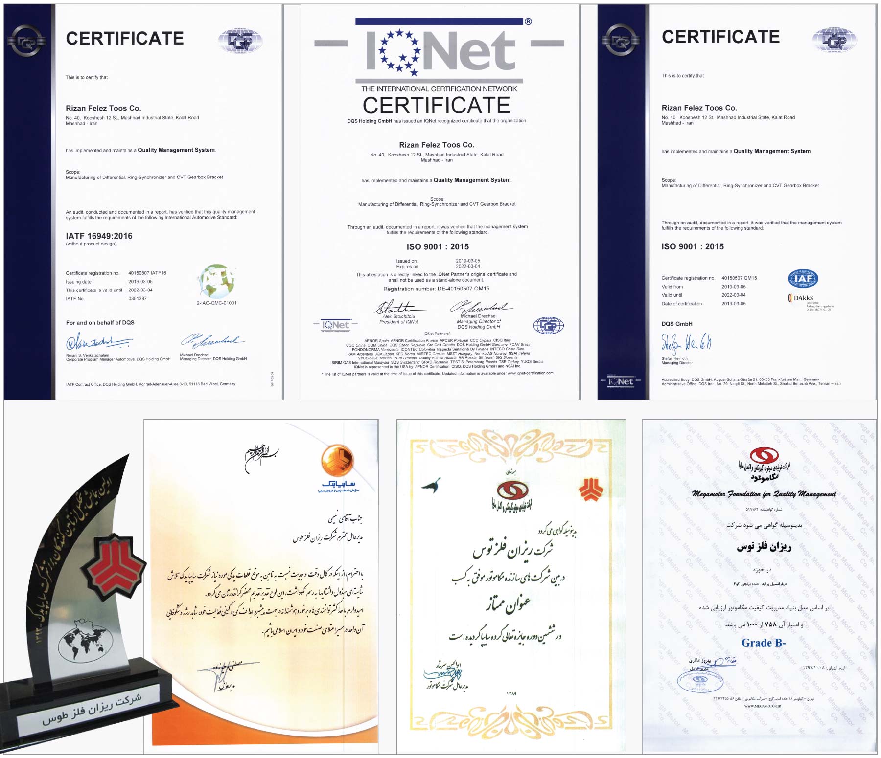 با توجه به اینکه هدف و التزام کلیه همکاران در تمامی واحدهای سازمان انجام کار با کیفیت می باشد ما بر آن شدیم که جهت اثبات آن نسبت به ارتقاء سیستم مدیریت کیفیت خود ابتدا از طریق پیاده سازی و تدوین الزامات استاندارد ISO/TS ۱۶۹۴۹:۲۰۰۹ در سال ۱۳۸۷ و اخذ گواهینامه IATF ۱۶۹۴۹ در سال ۹۶ اقدام نموده همواره اجرا و برقراری و بهبود مستمر اثربخشی این استاندارد را تعهد مدیریت و کلیه پرسنل خود می دانیم. سیاست شرکت ما بر این پایه استوار است که به خصوص خواسته های صنایع خودروسازی را به نحو شایانی برآورده سازيم وسيستم مديريت خود را بر همين مبنا گسترش دهيم .